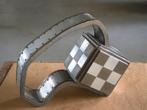 rgba(255,255,255,1) Henri FoucaultCube et damier - 1992Sculpture, plomb, zinc, vis et bois, 45 cm x 15 cm x 15 cm. Collection privée.© Henri Foucault Studio Demande d'information