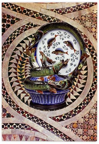 rgba(255,255,255,1) Henri FoucaultDouble jeu, Basilica di S.Marco - 2025Collage papier sur carte postale Basilica di S.Marcopavimento a mosaiconan.14.5 x 10.5 cm© Henri Foucault Studio Demande d'information