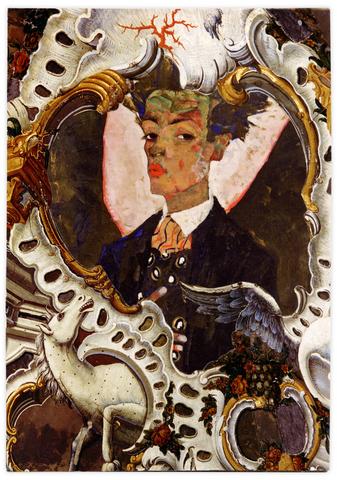 Collage papier sur le carton d’invitation de l’exposition Egon Schiele