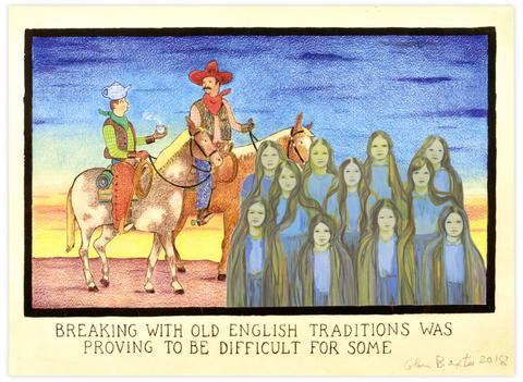 Collage papier sur le carton d’invitation de l’exposition Glen Baxter