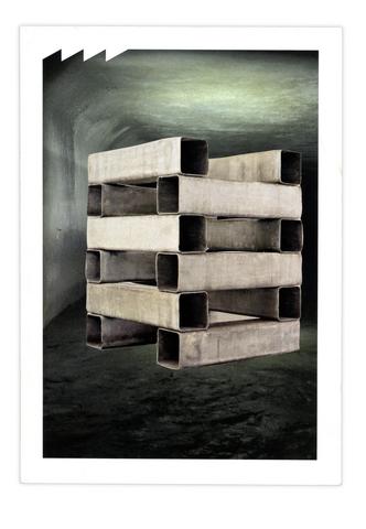 Collage papier sur le carton d’invitation de l’exposition Thomas Teurlai