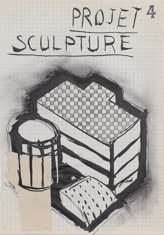 rgba(255,255,255,1) Henri FoucaultÉtude de sculpture 37 - 1990Dessin, encre et collage sur papier, 20,5 xm x 29 cm.© Henri Foucault Studio Demande d'information