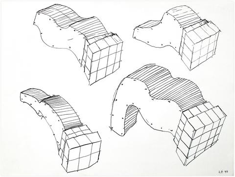 rgba(255,255,255,1) Henri FoucaultProjet de sculpture 1 - 1990Dessin, 24 cm x 30 cm.© Henri Foucault Studio Demande d'information