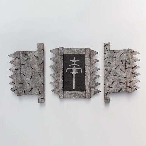 rgba(255,255,255,1) Henri FoucaultTriptyque - 1987Sculpture, carton, papier, colle, encre. 1 ( 30 cm x 17 cm x 4 cm) ; 1 ( 25 cm x 25 cm x 4 cm) ; 1 ( 30 cm x17,5 cm x4 cm).© Henri Foucault Studio Demande d'information