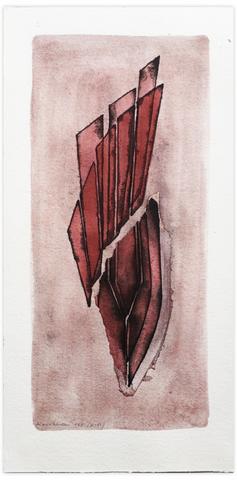 Aquarelle et encre de Chine, plume et lavis avec arrachage et re-colorisation sur papier épais