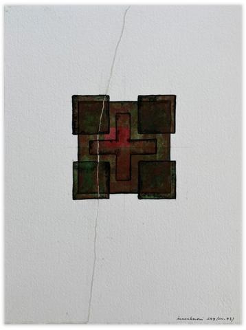 Aquarelle, encre de Chine, plume et lavis, avec déchirage sur papier contrecollé sur carton.