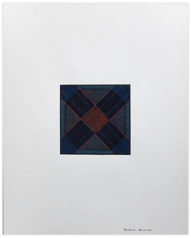 Aquarelle, encre de Chine, bandes de kraft formant tressage sur carton sable contrecollé sur papier Arches.