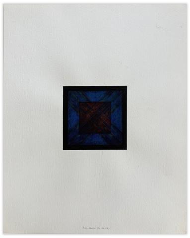 Techniques mixtes (aquarelle, encre de Chine, bandes de kraft formant tressage) sur carton sable contrecollé sur papier Arches.