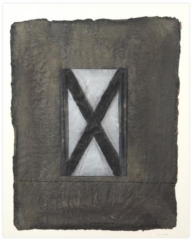 Fusain, graphite, gesso, avec titre manuscrit sur papier lin Duchêne, 53,5 x 42 cm.