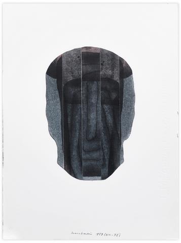 Collage en techniques mixtes (découpe, bandes de toile peinte, huile, aquarelle, feutre et acrylique) sur papier fort.