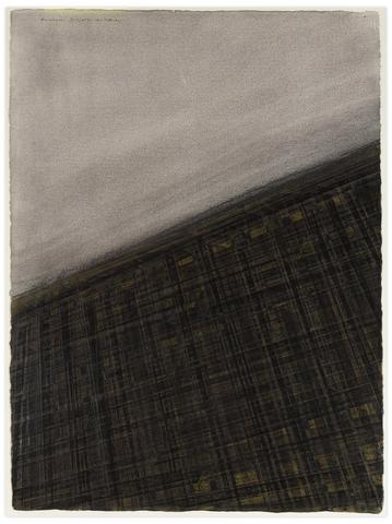 Peinture, gesso, crayon et collage de bandes sur papier, 77,5 x 57 cm.