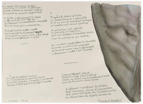 Poème manuscrit de Bernard Vargaftig sur lavis, encre de couleur sur papier, 45,5 x 61 cm chaque.
