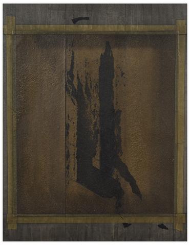 Peinture, gesso, fusain, frottage, arrachage sur carton fort, 65 x 90 cm.