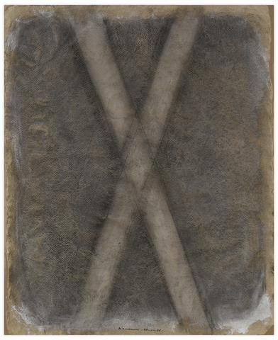 Peinture, fusain, pastel crayons gras, graphite et gesso sur papier lin, 52 x 42 cm.