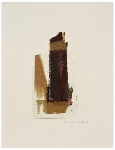 Aquarelle, encre de Chine, fusain, crayon gras, collage et arrachage kraft sur papier, 38,5 x 28 cm.