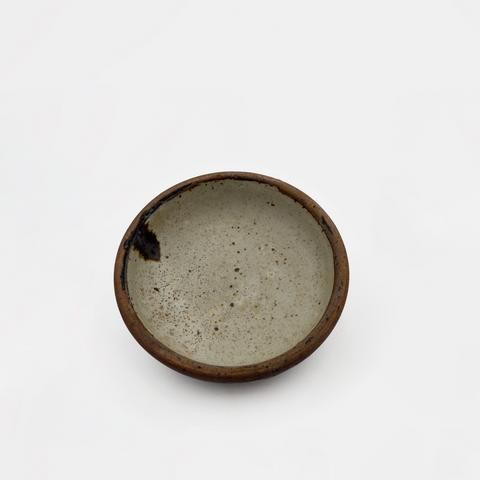 Grès naturel moyennement pyrité émaillé en blanc à l'intérieur. Cuisson dans le four de la rue de Vauvert à Bourges.