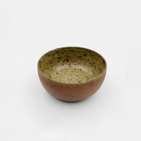 Grès légèrement pyrité naturel à l'extérieur et émail à la cendre à l'intérieur.