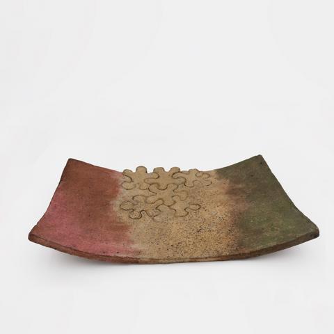 Grès légèrement pyrité avec des engobes. Cuisson dans le four de la rue de Vauvert à Bourges.