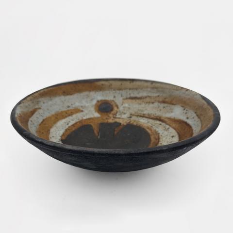 Grès légèrement pyrité avec des engobes et des émaux. Cuisson dans le four de la rue de Vauvert à Bourges.