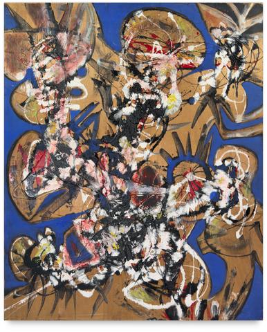 Oeuvre signée Jean-Jacques Lebel avec dédicace au dos : "Pour Renée et Jean Foussadier bien affectueusement ce tableau de 1961 "The Ache of the person".