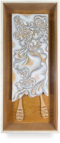 Sculpture relief, assemblage d'objets et peinture sur panneau de contreplaqué.