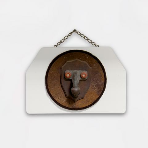rgba(255,255,255,1) Jean-Jacques LebelSans titre (Masque)Assemblage d'éléments en métal sur bois, chaîne.Jean-Jacques Lebel, artiste Demande d'information