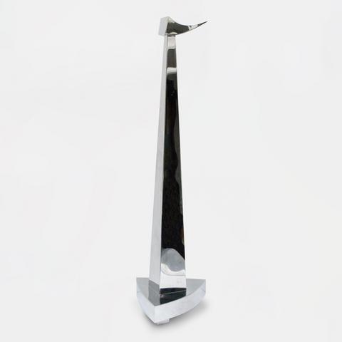 Sculpture "Le veilleur", 2014. Acier inoxydable poli miroir.