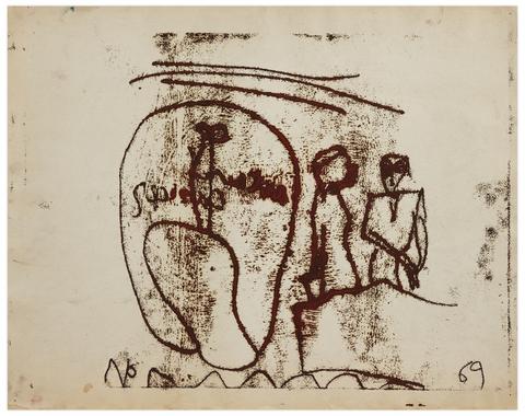 rgba(255,255,255,1) Norris EmbryArt & Cancer (Deux figures debout), 1969Signé et daté 'NO Norris 69' (en bas ) monotype sur papier 38 x 47.8 cm. Inscriptions: 'Art & Cancer'