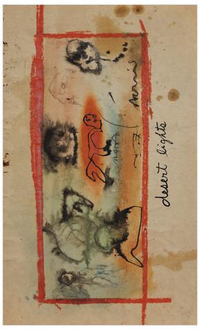 rgba(255,255,255,1) Norris EmbryDesert Lights (Figures, bords orange), vers 1957Signé 'Norris' (en bas à droite) aquarelle, encre et pastel gras sur papier chamois 19.8 x 29.7 cm.