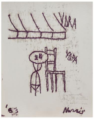 rgba(255,255,255,1) Norris EmbryHydra (Chaise et table), 1963Signé 'Norris' (en bas à droite), daté '1963' (en bas à gauche), inscrit deux fois 'YΔPA [Hydra]' monotype sur papier 30.3 x 22.9 cm.