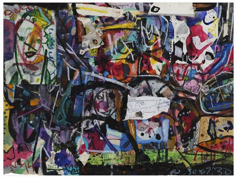 aquarelle, gouache, encre, stylo à bille, graphite et collage sur papier