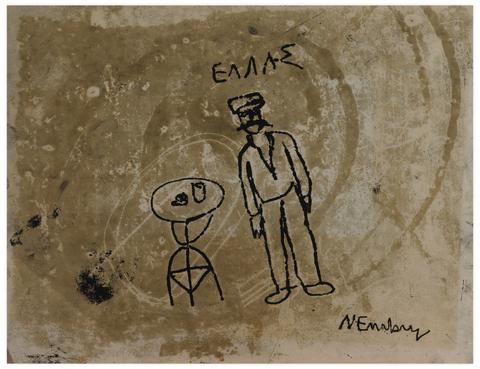 rgba(255,255,255,1) Norris EmbryMarin et table (recto); Marin et table sur fond noir (verso), vers 1955-60Signé 'NEmbry' (en bas à droite, au recto) monotype et graphite sur papier 21.5 x 27.9 cm.