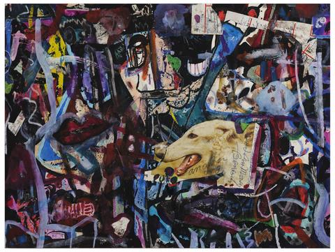 gouache, aquarelle, crayon gras, stylo à bille et collage sur papier