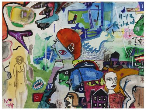 rgba(255,255,255,1) Norris EmbrySans titre (11-12 Richard)Signé et daté 'NO 74' (en bas à gauche) aquarelle, crayon gras, encre et stylo à bille sur papier 46 x 60.5 cm. Inscriptions: '11-12 Richard.'