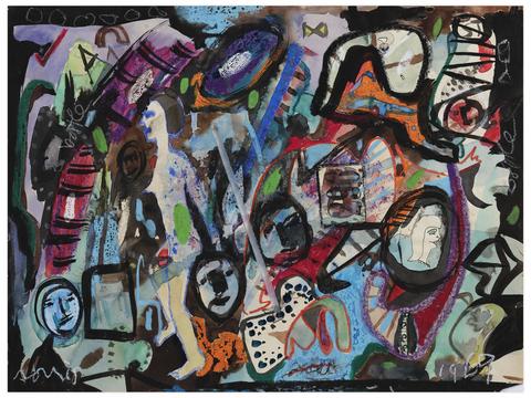 aquarelle, encre, crayon gras et collage sur papier