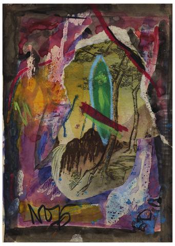 rgba(255,255,255,1) Norris EmbrySans titre (Arbres), 1975Signé et daté 'NO 75' (en bas à gauche)collage, aquarelle et pastel gras sur papier 29.8 x 22.7 cm.