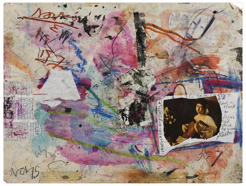 Signé et daté 'NO75' (en bas à gauche) aquarelle, crayon gras, graphite et collage sur papier 46 x 60.5 cm.