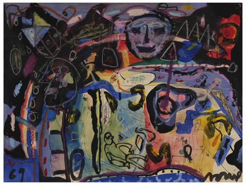 rgba(255,255,255,1) Norris EmbrySans titre (Chair Hair Air), 1969Signé 'norris' (en bas à droite), daté '69' (en bas à gauche) aquarelle, crayon gras et encre sur papier 46 x 60.5 cm. Inscriptions: 'Chair Hair Air'