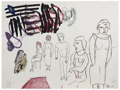 rgba(255,255,255,1) Norris EmbrySans titre (Cinq figures), 1968Signé 'Norris' (en bas à droite), daté '68' (en bas à gauche) encre, crayon gras et aquarelle sur papier 45.5 x 60.5 cm.