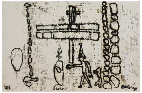 rgba(255,255,255,1) Norris EmbrySans titre (Clown de profil bras tendu), 1963Signé 'Embry' (en bas à droite), daté '63' (en bas à gauche) monotype sur papier 30.3 x 45.9 cm.
