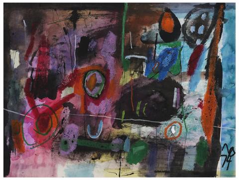 rgba(255,255,255,1) Norris EmbrySans titre (Composition abstraite), 1974Signé et daté 'NO 74' (en bas à gauche) aquarelle, crayon gras et encre sur papier 46 x 60.5 cm.