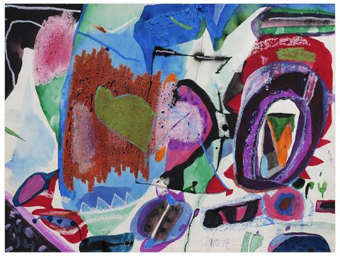rgba(255,255,255,1) Norris EmbrySans titre (Composition abtraite), 1974Signé et daté 'NO74' (en bas à gauche, et en bas à droite) aquarelle, gouache, crayon gras, encre et stylo à bille sur papier 45.5 x 60.5 cm.