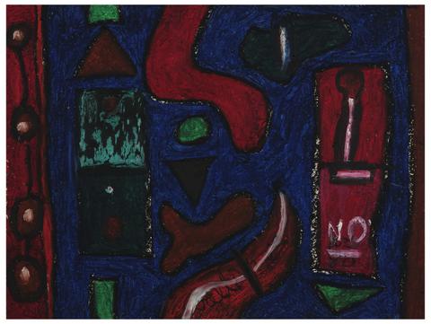 rgba(255,255,255,1) Norris EmbrySans titre (Composition rouge et bleue), 1980Signé et daté 'NO 80' (en bas à droite) crayon gras sur papier 46 x 60.5 cm. Inscription: 'Baltimore'
