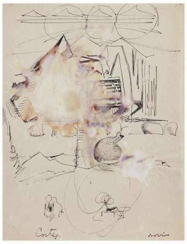 rgba(255,255,255,1) Norris EmbrySans titre (Cortes, trois cercles), vers 1962Signé 'Norris' (en bas à droite), inscrit 'Cortes' (en bas à gauche) encre et gouache sur papier 27.9 x 21.6 cm.