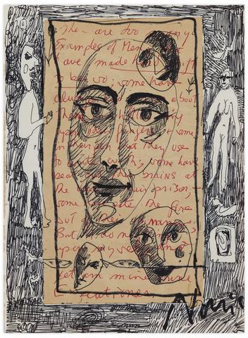 Signé 'Norris' (en bas à droite) stylo à bille sur papier chamois contrecollé sur papier 22 x 16.4 cm.