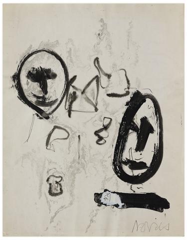 rgba(255,255,255,1) Norris EmbrySans titre (Deux masques noirs), 1976 ?Signé 'Norris' (en bas à droite) gouache et encre sur papier 35.3 x 28.1 cm.
