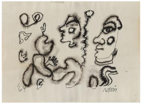 rgba(255,255,255,1) Norris EmbrySans titre (Deux profils et une main), 1964Signé 'Norris' (en bas à droite), daté '64' (en bas à gauche) encre sur papier 22.3 x 30 cm.