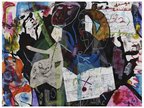 encre, aquarelle, crayon gras, stylo à bille et collage sur papier