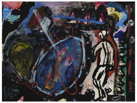 rgba(255,255,255,1) Norris EmbrySans titre (Figure debout), 1969Signé et daté 'Norris 69' (en bas à droite) encre, aquarelle et crayon gras sur papier 45.5 x 60.5 cm.