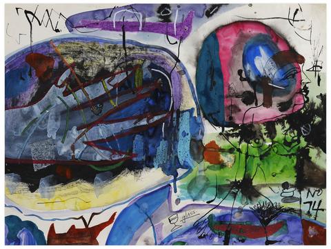 rgba(255,255,255,1) Norris EmbrySans titre (Glass), 1974Signé et daté 'NO 74' (en bas à droite) aquarelle, crayon gras et encre sur papier 45.5 x 60.5 cm. Inscriptions: 'glass'